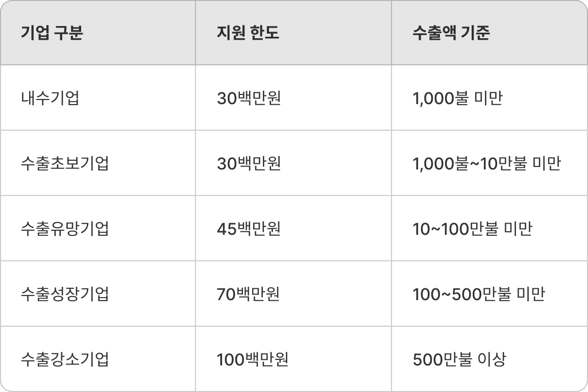 기업 매출액에 따라 정부지원은 70%~50% 비율로 차등 지원됩니다.